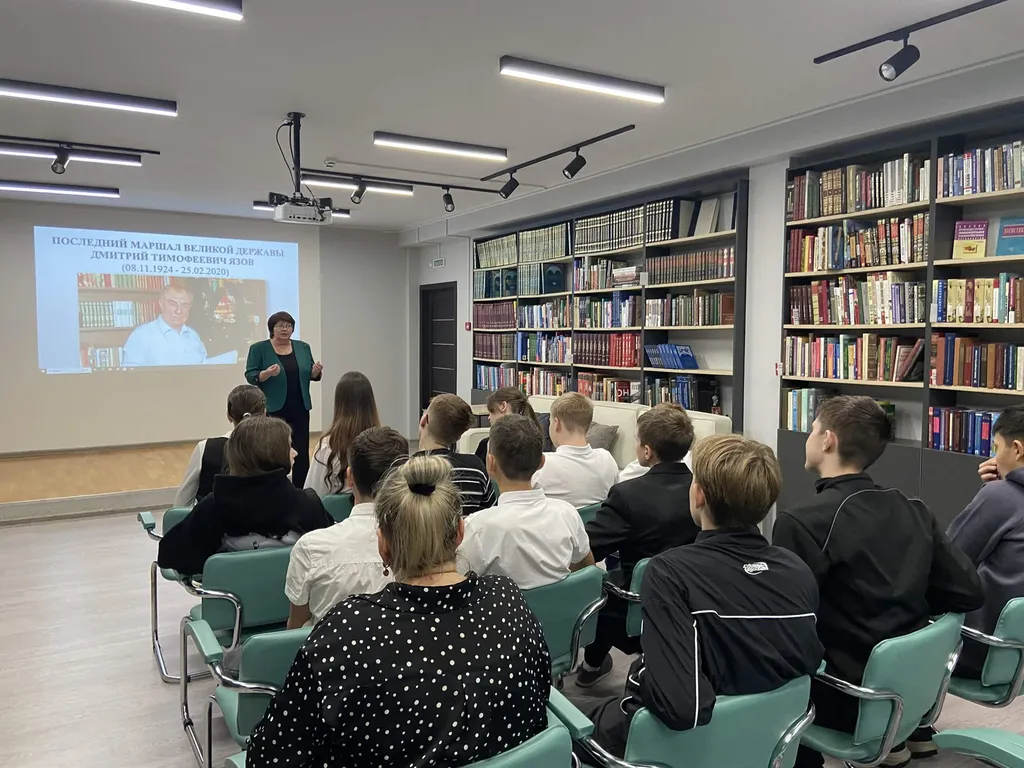 Продолжая знакомство с биографией выдающегося деятеля, присутствующие посетили зал краеведения, где был организован просмотр фильма о жизни и легендарном военном пути прославленного земляка. Патриотическая встреча продолжилась интеллектуальной игрой, в ходе которой школьники не только проверили свои знания, но и узнали новые факты о судьбе и вкладе в историю страны Маршала Язова. Самым активным были вручены памятные сувениры.