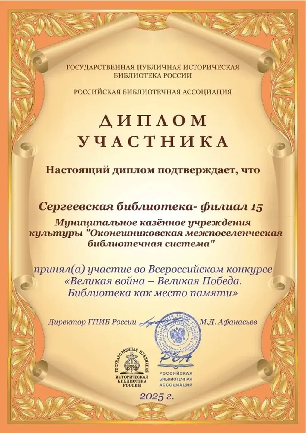 По итогам конкурса библиотеки получили Дипломы участника.