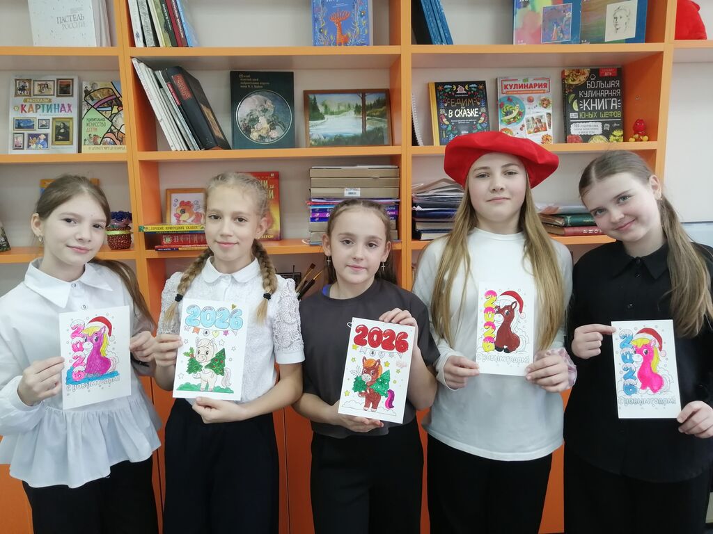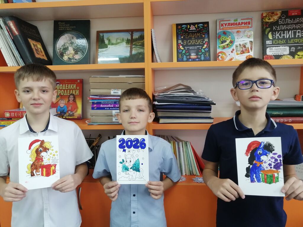 В детской библиотеке распахнула свои двери волшебная мастерская Деда Мороза. Сегодня там царила атмосфера творчества и предвкушения праздника: юные умельцы приняли участие в мастер-классе по созданию открытки «Символ года 2026». Вооружившись разноцветными красками, блестками и прочими сокровищами, ребята с увлечением расписывали свои будущие шедевры. Вскоре эти открытки, хранящие тепло детских рук, разлетятся по домам, чтобы подарить радость родным и близким. Каждый участник унес с собой частичку новогоднего чуда и отличное настроение. А еще ребят ждала встреча с удивительным миром книг, посвященных новогодним праздникам.