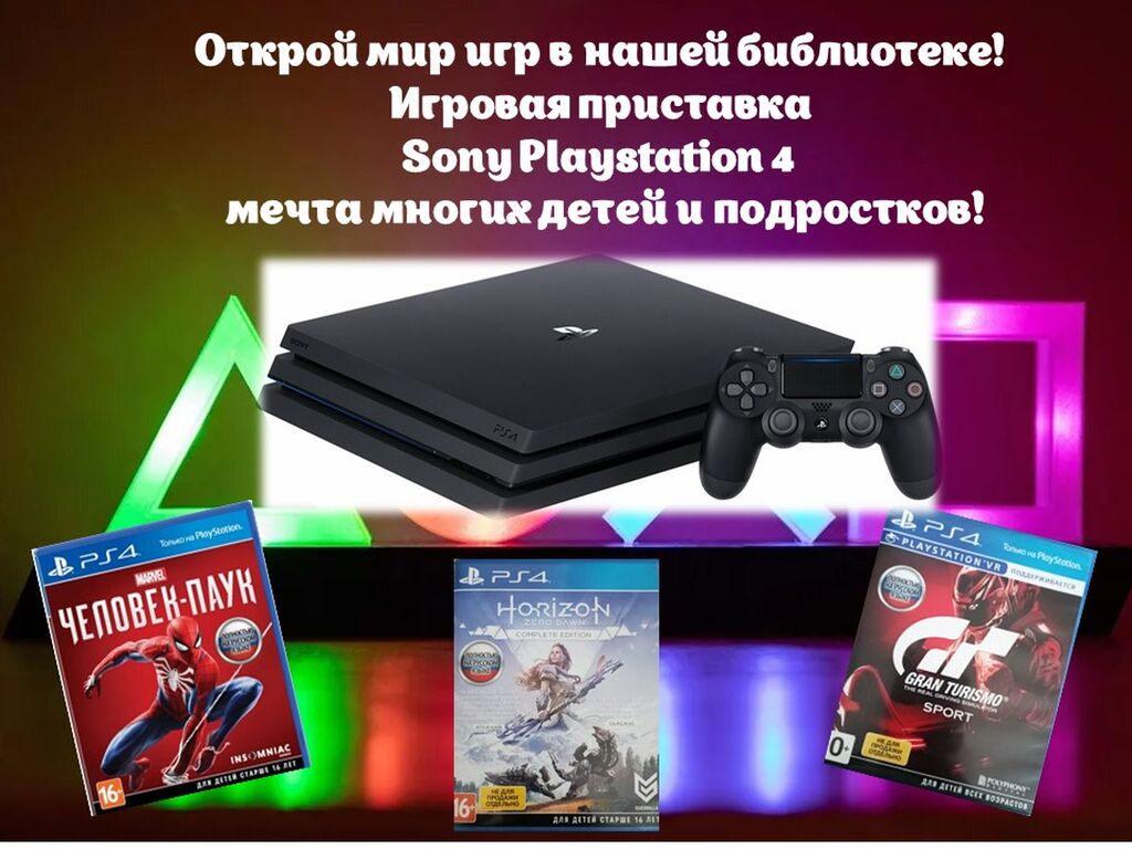 В детской модельной библиотеке есть игровая приставка Sony Playstation 4