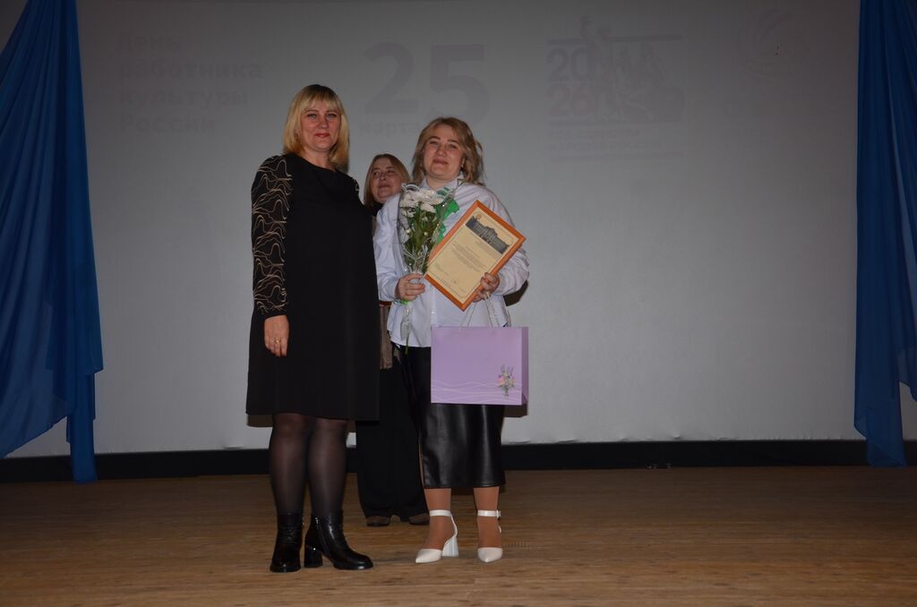 27 марта работники культуры Оконешниковского района принимали поздравления с Днем работника культуры от заместителя главы Оконешниковского района Светланы Сливенко, руководителей учреждений культуры. В торжественной обстановке были вручены благодарности и грамоты за добросовестный труд и большой вклад в развитие культуры. Среди награжденных и наши коллеги, специалисты библиотечной сферы. Елене Матюковой, библиотекарю Язовской библиотеки, был вручен Сертификат победителя конкурса на выплату денежного поощрения лучшим муниципальным учреждениям культуры, находящимся на территории сельских поселений Омской области, и их работникам в 2026 году в номинации «Лучший специалист учреждения культуры».